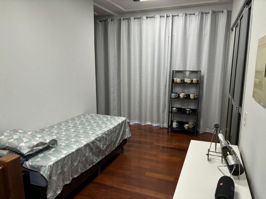 Pavimento superior com sala, suíte, terraço coberto com churrasqueira, mesa com 12 lugares e frigobar, excepcional vista panorâmica da cidade, lavabo e lavanderia.