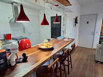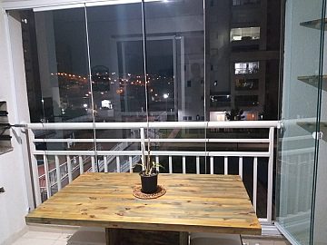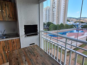 Apartamento mobiliado, móveis planejados nos 3 dormitórios; gabinetes nos banheiros; sala de jantar; sala de tv com rack tipo painel e gavetas; cozinha planejada tipo americana; varanda gourmet com mesa + banquetas + armário; piso laminado de madeira; aquecimento a gás e garagem coberta!