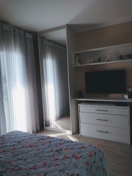 Excelente apartamento com 3 dormitórios, sendo 01 com suíte e sacada voltada para a serra, sala ampla para dois ambientes e com sacada de vidro, cozinha ampla com armários planejados e bem iluminada, área de serviço bem arejada, 02 banheiros com box de vidro, 2 vagas de garagem, com 100m2 de área privativa, escada de acesso.